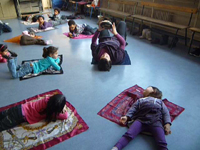 un temps de respiration et de relaxation, les enfants et enseignants